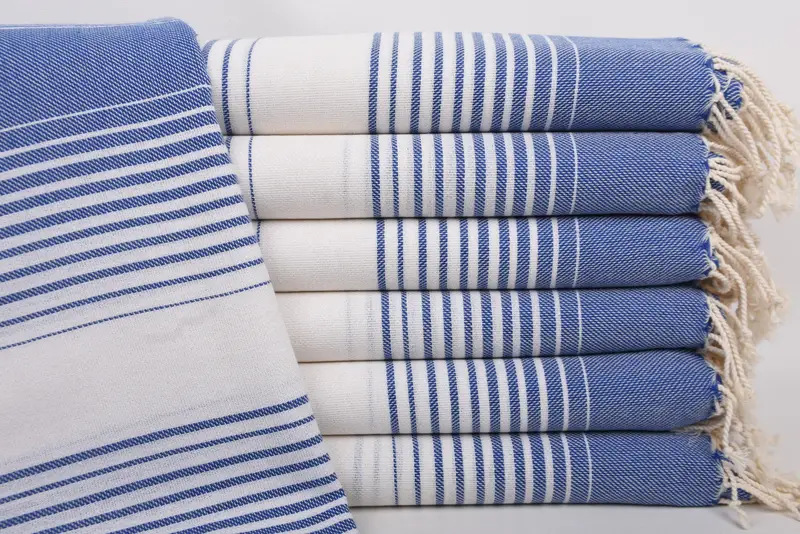 These beach towels are meticulously woven from 100 percent organic cotton, ensuring enhanced absorbency and eco-friendliness. Characterized by their 67x40 inches (170x100 cm) dimensions and a weight of 260 grams, they provide a plush texture. Tolerances in hand-weaving may result in slight variations of up to 2.5 cm in size.