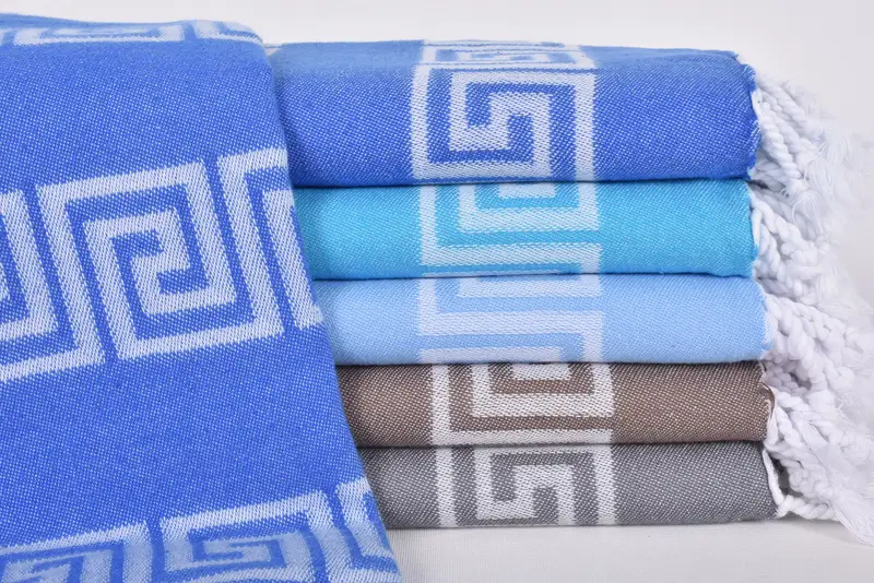 Organic cotton characterizes this beach towel, ensuring superior absorbency and a soft feel. Measuring 70x40 inches (180x100 cm) with a tolerance of up to 1-2.5 cm due to hand-weaving, the towel weighs 360 grams.