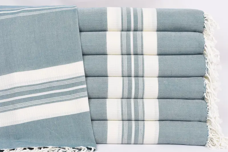 The Turkish Bath Towel is crafted from 100 percent organic cotton, ensuring exceptional absorbency and comfort. Characterized by its dimensions of 60x38 inches (150x95 cm), the towel weighs 250 grams (8.8 ounces). Hand weaving results in a tolerance of 1-2.5 cm in size.