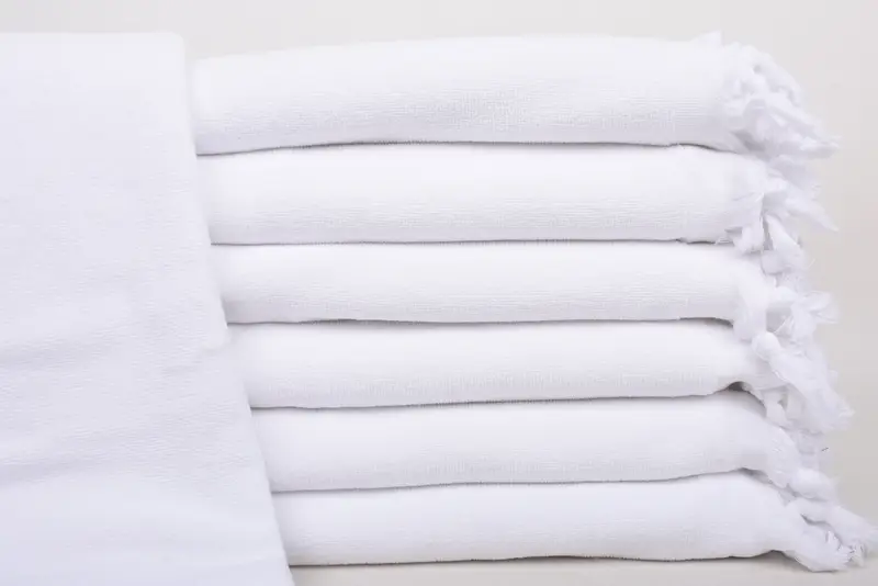 The Turkish Beach Towel is characterized by its 100 percent organic cotton composition, ensuring high absorbency and a soft texture. The towels measure 67x36 inches or 170x90 centimeters, with a weight of 400 grams. The hand-weaving process results in possible variations of 1-2.5 centimeters in size.