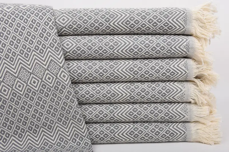 Turkish cotton towels are highly regarded for their superior absorbency and quality. Characterized by their fiber composition, these towels ensure maximum water retention and comfort. The towel's dimensions are 70x40 inches or 100x180 cm, weighing approximately 420 grams. Hand-weaving introduces slight variations within a 1-2.5 cm tolerance.