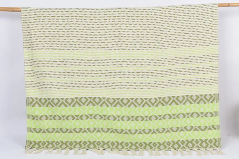 The beach towel, manufactured in Turkey, is characterized by its 100 percent organic cotton composition, ensuring excellent absorbency and durability. Measuring 70x40 inches or 180x100 centimeters, the towel weighs approximately 400 grams or 14.1 ounces. Hand-woven with meticulous attention to detail, it may vary slightly in size by up to 1-2.5 cm.