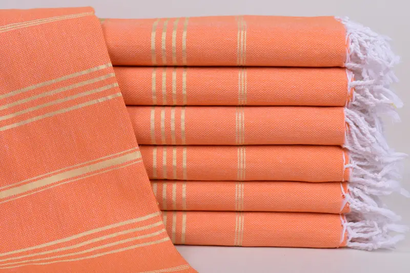 These Turkish towels are crafted from 100% organic cotton, ensuring optimal absorption and gentle texture. Measuring 70 inches by 40 inches (180 cm by 100 cm) with a weight of 280 grams, the tolerances for hand-weaving variations are 1-2.5 cm.