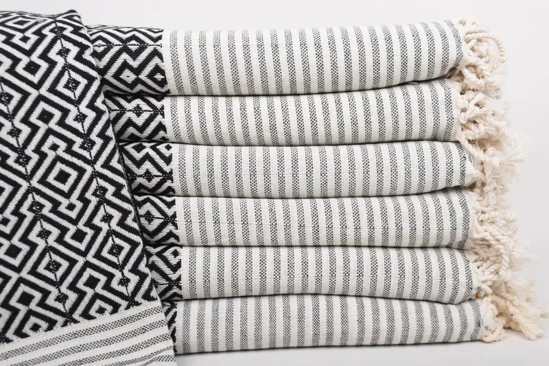 Turkish towels are crafted from 100% cotton, ensuring superior absorbency and a soft touch. Characterized by precise dimensions of 75x38 inches or 190x95 cm, these towels might vary slightly by 1-2.5 cm due to hand-weaving techniques. Weighing approximately 400 grams, these towels offer durability and comfort.
