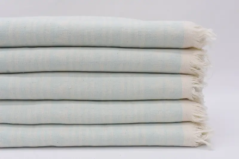 Crafted from 100 percent organic cotton, these bath towels ensure superior absorbency and durability, resulting in a premium texture. Characterized by a sub-category of bath towels, they measure 70x40 inches or 180x100 centimeters with a hand-weaving tolerance of 1-2.5 cm. Weights approximately 320 grams or 11.3 ounces, each towel promises a balance of lightness and absorbency.