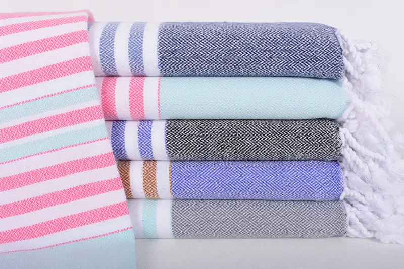 Ensuring premium quality, the Turkish towel is crafted from 100 percent organic cotton, characterized by high absorbency. The towels measure 67 x 40 inches or 170 x 100 centimeters, weighing 300 grams or 10.6 ounces. Due to the hand-weaving process, dimensions may vary by up to 2.5 cm.