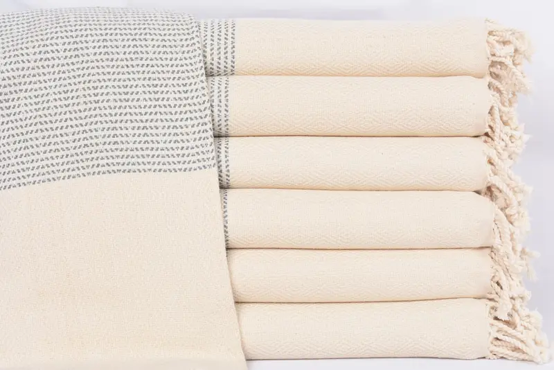 Turkish cotton-based beach towels ensure superior absorbency and a soft touch, characteristic of their natural fiber composition. The beach towels measure 70x40 inches or 180x100 centimeters, weighing 450 grams. Hand weaving may result in minor variations of up to 2.5 centimeters.
