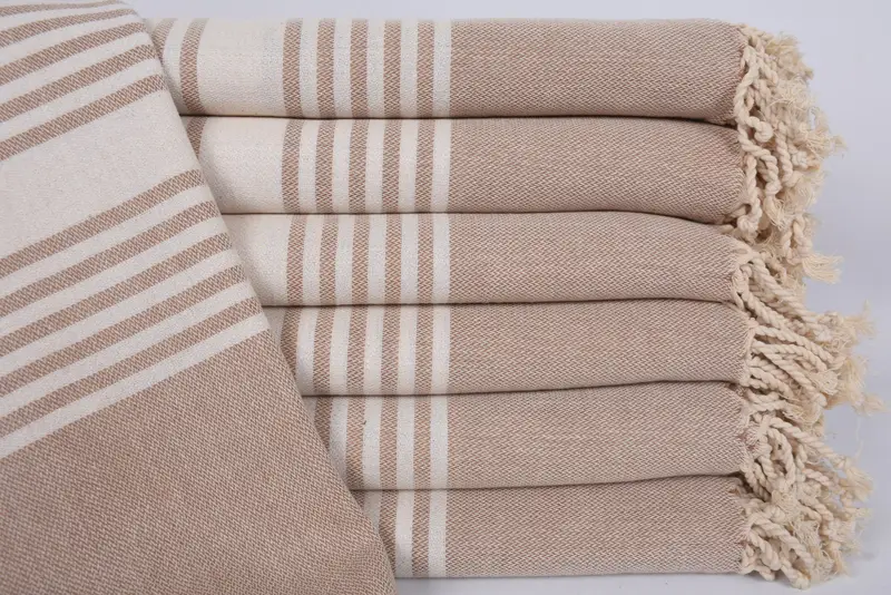 Our Turkish cotton towels are renowned for their absorbency and quality, crafted using 100 percent organic cotton. These towels, weighing 350 grams or 12.3 ounces, ensure optimal water absorption, characterized by their plush texture. Characterized by their dimensions of 67x40 inches or 170x100 cm, the tolerance for hand-weaving results in slight variations of up to 2.5 cm.