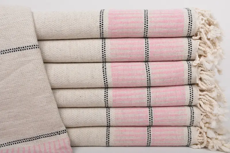 Characterized by high absorbency and superior softness, the Turkish bath towel is meticulously woven from 100 percent cotton, ensuring durability and comfort. Measuring 70x40 inches or 100x180 centimeters, these towels weigh 340 grams or approximately 12 ounces. The hand-weaving process results in a possible variation of 1-2.5 centimeters in size.
