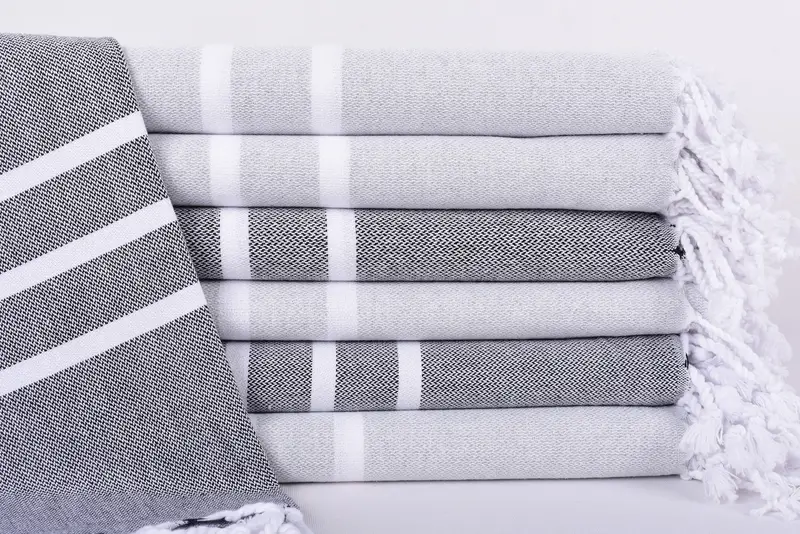 The Turkish cotton towels, characterized by their luxurious feel and superior absorbency, are crafted from 100 percent organic cotton. Ensuring exceptional moisture retention, they are ideal for beach or bath use. The towels measure 70 inches by 40 inches, translating to 180 centimeters by 100 centimeters, with minor variations of up to 2.5 centimeters due to hand-weaving. The weight is 380 grams, providing a balance of lightweight portability and substantial absorbency.