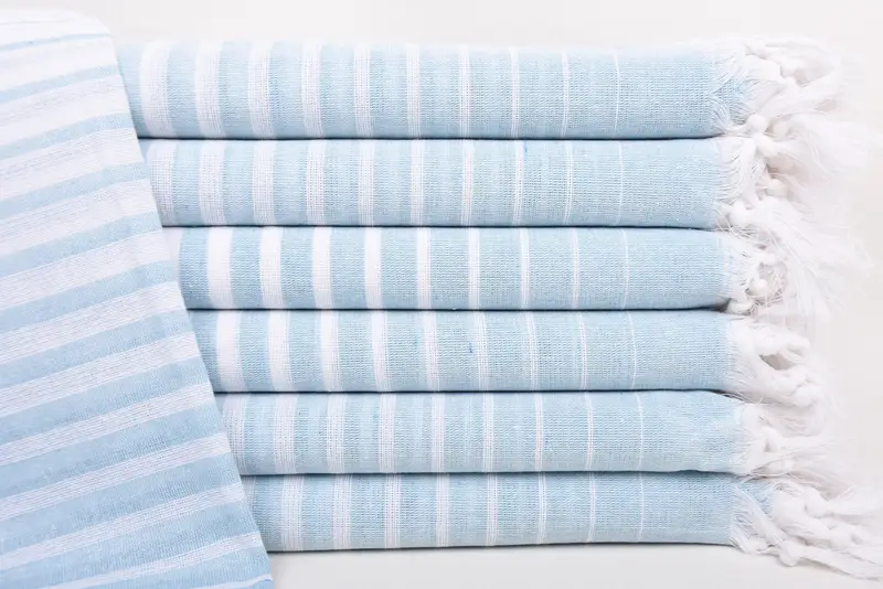 The 40x69 inches white-turquoise cotton towel is characterized by its 100 percent cotton composition, ensuring superior absorbency. Resulting in a lightweight yet durable bath towel, its dimensions are specified as 69x40 inches or 100x175 centimeters, with a tolerance of 1-2.5 centimeters due to hand weaving. Characterized by its high-quality thread, the towel features customizable embroidery, allowing for personalization with monograms, names, or dates. This personalized aspect enhances its usability as a cherished gift for various occasions. ...