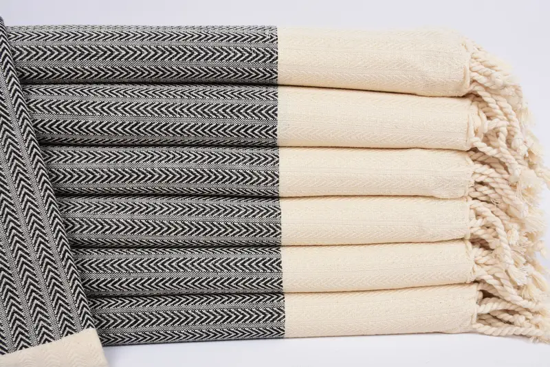 The Turkish beach towel is composed of 100 percent organic cotton, ensuring both durability and absorbency. Resulting in an ideal product for various uses, the towel is precisely 36x67 inches or 90x170 cm, weighing 420 grams. Hand-weaving tolerances may cause minor size variations up to 2.5cm.