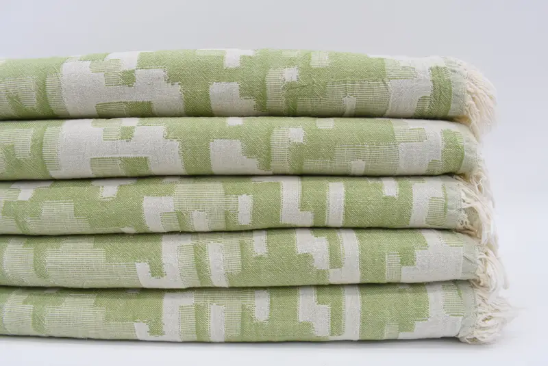 These Turkish towels are characterized by their 100 percent organic cotton composition, ensuring superior absorbency and durability. They are crafted through meticulous hand-weaving, resulting in towels measuring 67x36 inches (170x90 cm) with a tolerance of 1-2.5 cm. The weight of each towel is 340 grams or 12.0 ounces, offering a balance of lightweight portability and robust functionality.