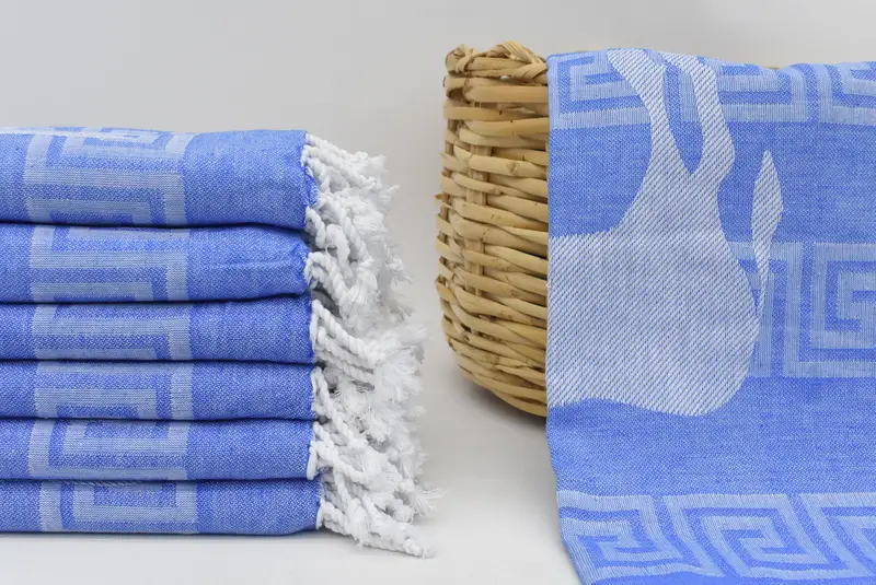 Handcrafted Turkish Peshtemal Towel, characterized by its use of 100% natural cotton. Ensuring a soft texture and high absorbency, the fiber composition is specifically chosen for comfort and durability. Measuring 70 inches by 40 inches or 180 centimeters by 100 centimeters, with a tolerance of up to 2.5 centimeters due to hand-weaving. Weighing between 8 to 10 ounces or 250 to 300 grams, this towel offers a balance of lightness and absorbency.