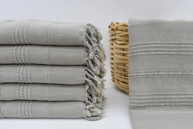 Each towel exemplifies 100% natural cotton composition, ensuring exceptional softness and absorbency. Characterized by a hand-weaving process, these towels measure precisely 63x36 inches or 160x90 centimeters. Variations in dimensions may occur due to the weaving process, typically within a tolerance of 1-2.5 centimeters.
