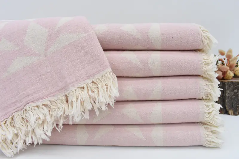 These towels are meticulously handcrafted in Turkey, characterized by their 100 percent organic cotton material, ensuring exceptional absorbency and durability. Each towel measures 67x36 inches or 170x90 cm, weighing approximately 315 grams. Hand-weaving variations may cause slight size differences of up to 2.5 cm.