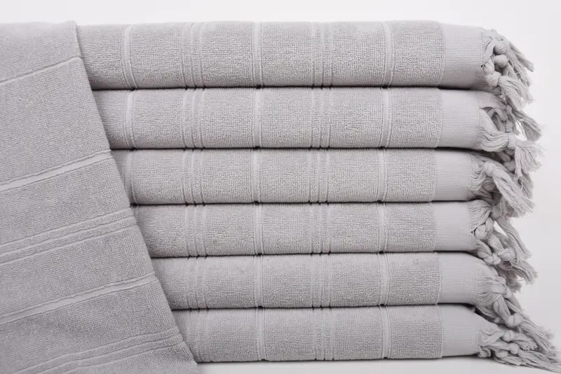 Constructed from 100% organic cotton, these towels ensure superior absorbency and quality, contributing to their durability and softness. Characterized by dimensions of 40 inches by 18 inches (100 cm by 45 cm), each hand-woven towel has a tolerance of 1-2.5 cm. Weighing 100 grams (3.5 oz), they provide a balance of lightness and robustness.