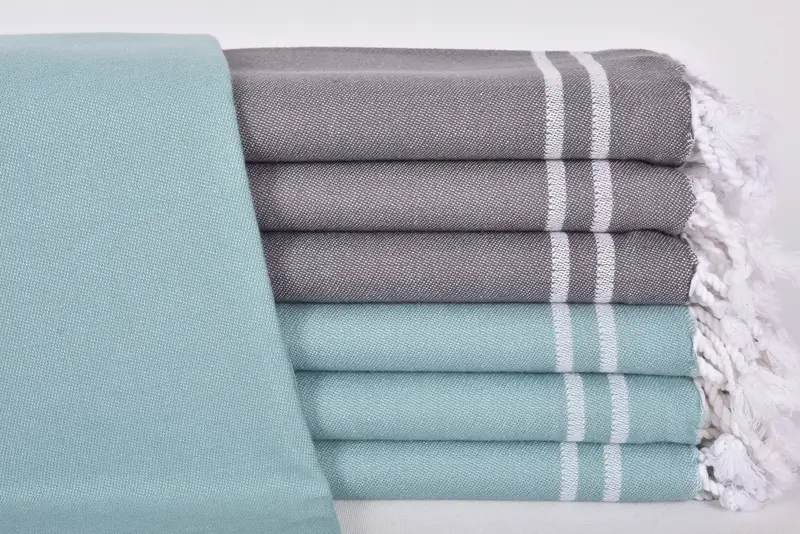 Each Turkish towel is composed of 100% organic cotton, ensuring both high quality and superior absorbency. The towels are hand-woven in Turkey, resulting in a final product measuring 70x40 inches (180x100 cm) with a tolerance of 1-2.5 cm due to weaving practices. Customers can customize their towels with embroidery of monogram letters or logos, offering a personal touch for special occasions such as weddings or bachelorette parties.