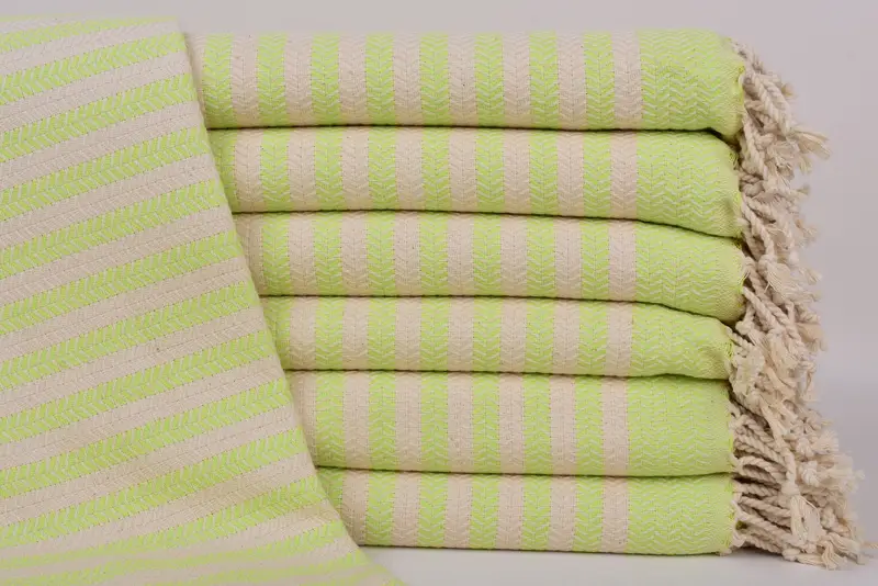 Characterized by a size of 70x40 inches (180x100 cm) and a weight of 440 grams, the towels feature slight size variations due to hand weaving.