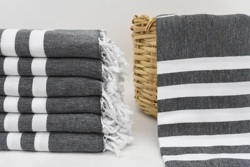 Turkish Towels, characterized by their high absorbency, are composed of 100 percent organic cotton, ensuring a soft and durable texture. Measuring 63x40 inches or 160x100 cm, these towels exhibit a weight of 280 grams, offering both comfort and durability. Due to hand-weaving techniques, size variations of up to 2.5 cm may occur.