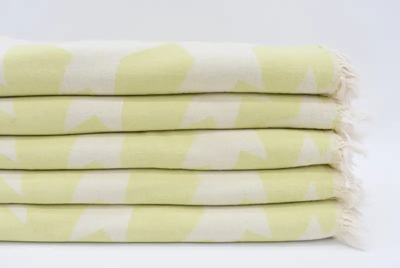 Characterized by high-quality fiber composition, these towels are made from 100 percent organic cotton, ensuring superior absorbency and softness. Resulting in a product that meets premium standards, the dimensions are precisely 67x36 inches or 170x90 centimeters, with a tolerance of 1-2.5 centimeters due to hand-weaving. Weighing 310 grams or 10.9 ounces, each towel presents a lightweight yet durable option for various uses.