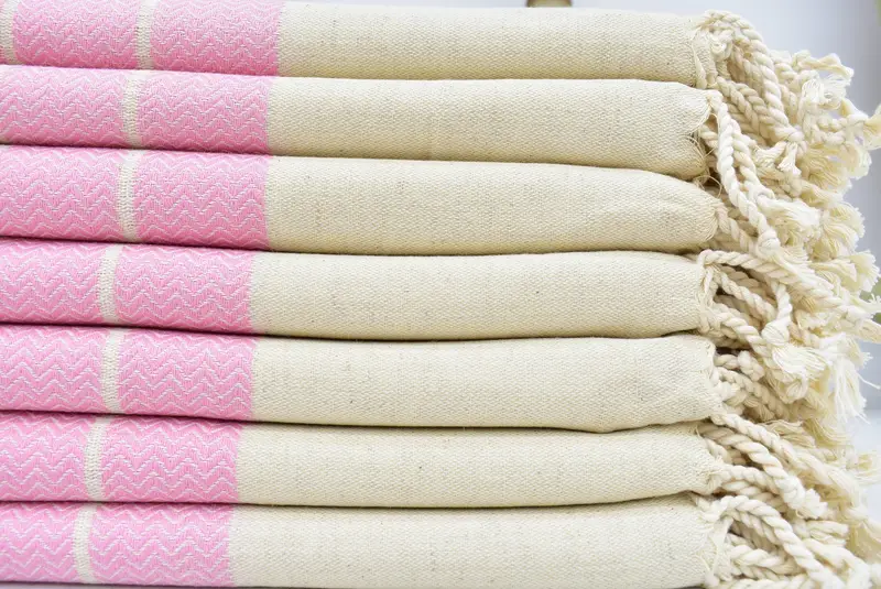 These Turkish cotton towels are characterized by their 100 percent organic cotton composition, ensuring superior absorbency and softness. Each towel exhibits dimensions of 67x40 inches (170x100 cm) with a weight of 330 grams (11.6 oz). Hand-weaving tolerances may result in slight variations of up to 2.5 cm.
