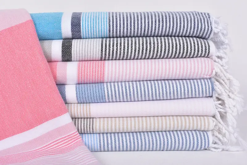 Our Turkish cotton towels, characterized by their 100 percent organic cotton composition, provide exceptional absorbency and softness. Each towel is meticulously hand-woven ensuring premium quality and durability. The towels are specified to measure 67x40 inches or 170x100 centimeters, with a tolerance of 1-2.5 cm due to the hand-weaving process. The weight of each towel is approximately 290 grams.