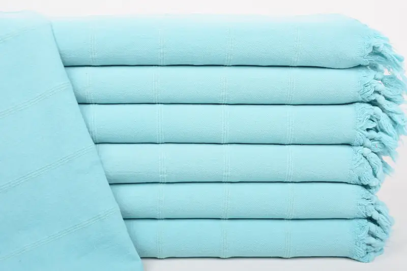 Turkish towels are meticulously crafted from 100% organic cotton, ensuring durability and quality. Characterized by their dimensions of 36x22 inches or 90x55 centimeters, these towels can vary slightly due to hand-weaving tolerances, typically between 1-2.5 centimeters. Weighing at 144 grams, these towels provide a balanced thickness, ensuring utility and comfort.