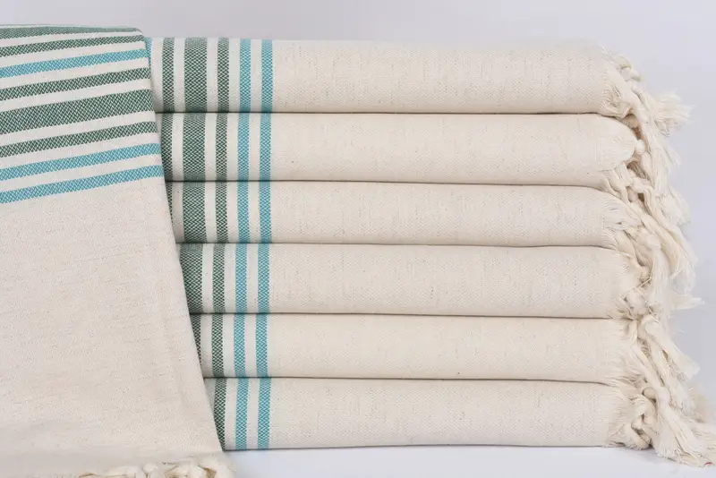 Characterized by its 100 percent natural linen material, the Turkish Bath Towel ensures high absorbency and durability. Measuring 70 inches by 40 inches (180 cm by 100 cm), with a weight of 410 grams, this hand-woven towel offers slight tolerances in size of up to 2.5 cm.