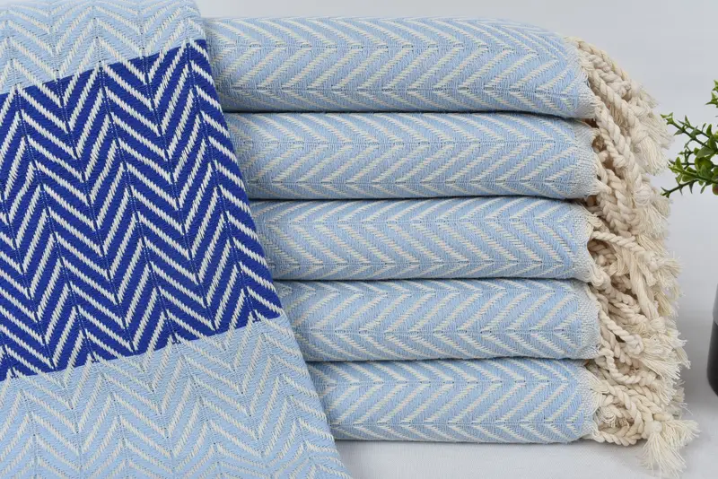 The Turkish Peshtemal Towel is crafted from 100% organic cotton, ensuring superior absorbency and comfort. Characterized by its 70x40 inches dimensions or 180x100 cm, it weighs between 13-14 ounces (400-450 grams). Hand-weaving results in slight variations, up to 2.5 cm in either direction.