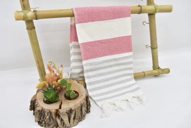 Turkish towels are characterized by their 100 percent organic cotton material, ensuring superior absorbency and durability. Each bath towel measures 36x18 inches (90x45 cm), with a weight of 120 grams (4.2 oz). The hand-woven nature of these towels results in a tolerance of 1-2.5 cm in size.