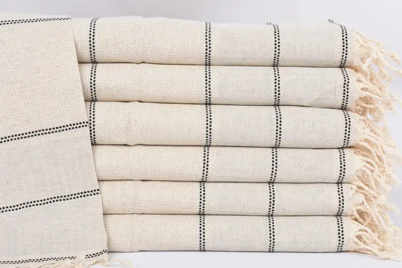 Characterized by a composition of 100% organic cotton, this dish towel exhibits superior absorbency and texture. Resulting in a versatile kitchen utility, its dimensions are precisely 40x20 inches or 100x50 centimeters, with a potential variance of 1-2.5 centimeters due to hand-weaving. Weighing 120 grams, it ensures durability for extensive use.
