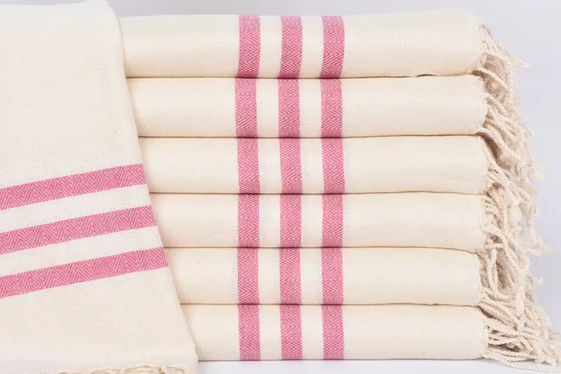 Organic cotton fiber composition ensures superior absorbency, making these towels ideal for diverse uses such as beach towels, bath towels, or even tablecloths. Characterized by dimensions of 70x40 inches or 180x100 centimeters, these towels have a weight of 250 grams, allowing for a balance between lightweight portability and durability. Weaving tolerances may result in variations of up to 1-2.5 centimeters in size.