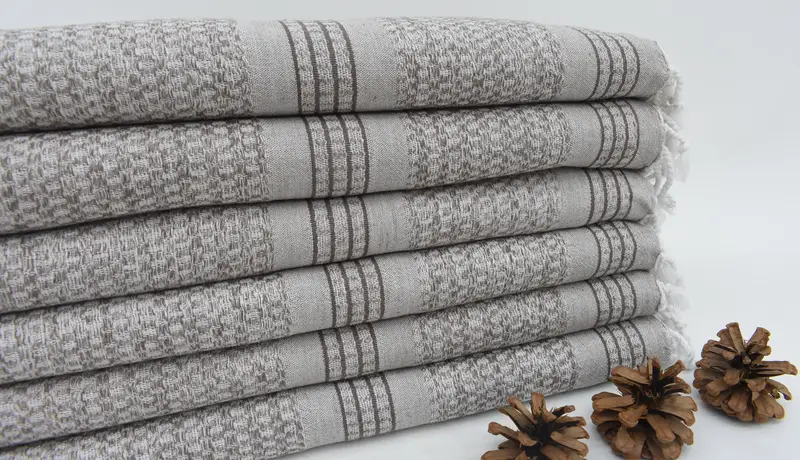 Crafted from 100% natural cotton, this handmade Turkish Peshtemal Towel ensures a soft and absorbent experience. Weighing between 12-14 ounces (300-400 grams), the towel measures 70 inches by 36 inches (180 cm by 90 cm), with a hand-weaving tolerance of up to 1-2.5 cm. Its luxurious fiber composition guarantees excellent moisture absorption and durability.