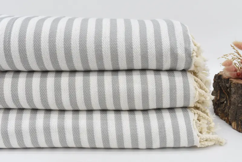 The Turkish blanket is crafted from 100 percent organic cotton, ensuring exceptional absorbency and comfort. Resulting in a weight of 822 grams or 29 ounces, the blanket measures 103x75 inches or 260x190 cm. Hand-woven with tolerances within 1-2.5 cm.