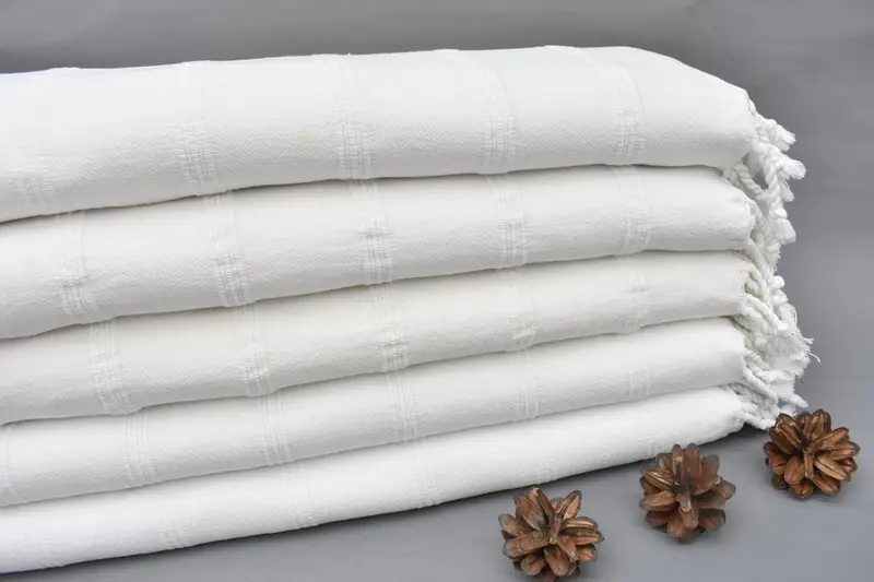 Characterized by its fiber composition, the Turkish towel is crafted from 100% natural cotton, ensuring superior absorbency and durability. Resulting in a towel that is both lightweight and highly functional, it weighs between 350-450 grams and measures 170 cm by 90 cm, with weaving tolerances of up to 2.5 cm.