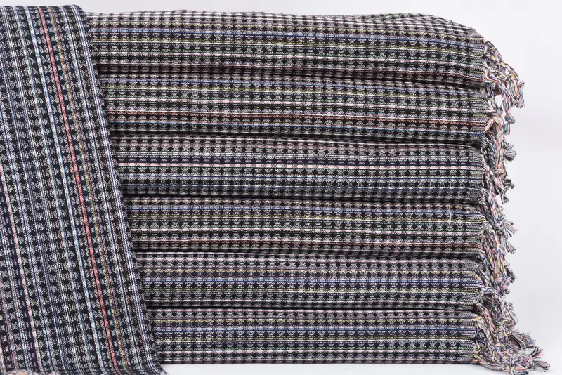 Organic cotton ensures superior quality and sustainability in these towels, characterized by high absorbency and durability. Each towel is meticulously woven measuring 38 inches by 18 inches, equating to 95 centimeters by 45 centimeters, with a slight tolerance of 1-2.5 centimeters due to the manual weaving process. The towels weigh 120 grams, providing a perfect balance between lightness and utility.