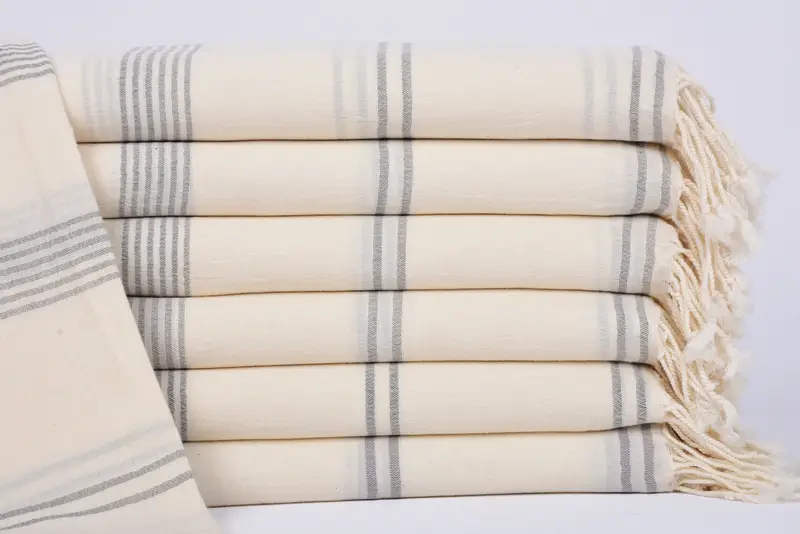 Weaving is completed by hand, resulting in potential minor variations in size and weight. The towel's organic cotton material ensures durability and longevity.