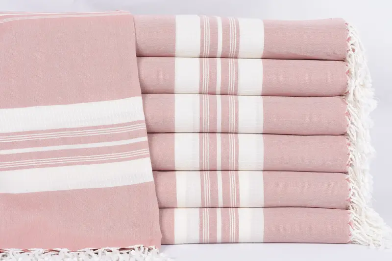 Turkish cotton towels are characterized by their 100 percent organic cotton material, ensuring superior absorbency and softness. Measuring 60" x 38" inches or 150 x 95 cm, these towels have a weight of 250 grams. Due to hand-weaving, dimensions may vary by up to 1-2.5 cm.