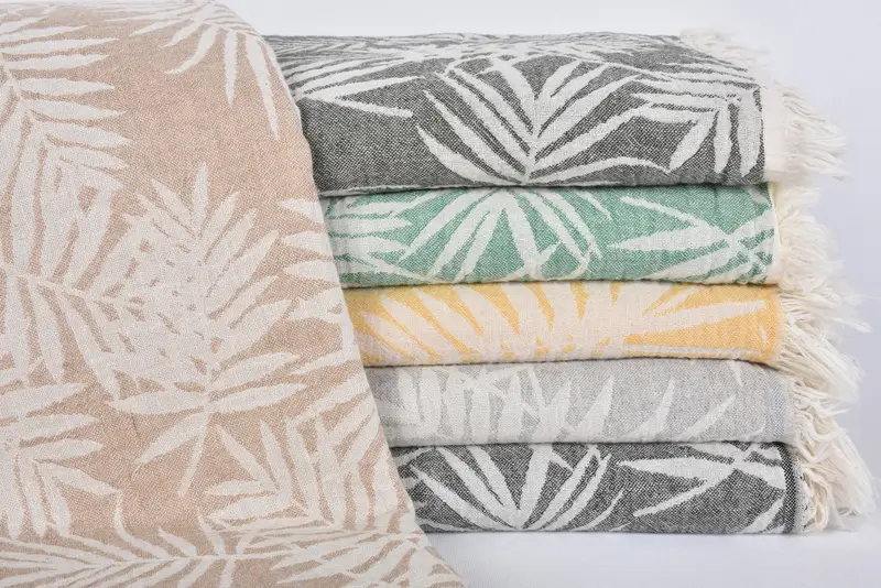 The blanket is characterized by its 100% organic cotton material, ensuring excellent absorbency and soft texture. The throw measures 99 by 79 inches, equating to 250 by 200 centimeters, with a weaving tolerance of up to 1-2.5 centimeters. Weighing in at 1000 grams, the blanket offers a substantial weight for cozy comfort.