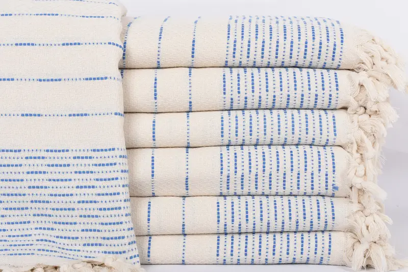 This Turkish throw blanket is composed entirely of 100% organic cotton, ensuring high quality and durability. Measuring 97x91 inches (245x230 cm), this bedspread weighs 1220 grams (43 ounces), resulting in a lightweight yet substantial product. Weaving tolerances may vary slightly by up to 1-2.5 cm.