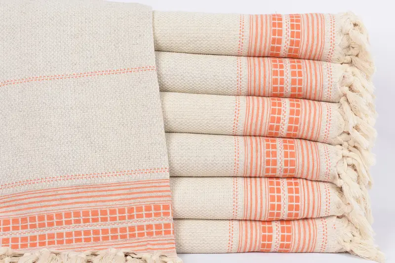 The Turkish blanket, characterized by its natural linen composition, ensures superior absorbency and breathability. Dimensions of this throw blanket measure 95x93 inches or 240x235 centimeters, with a weight of 1160 grams or 40.9 ounces. Hand-weaving tolerances might slightly vary, resulting in dimensions up to 1-2.5 centimeters smaller or larger.
