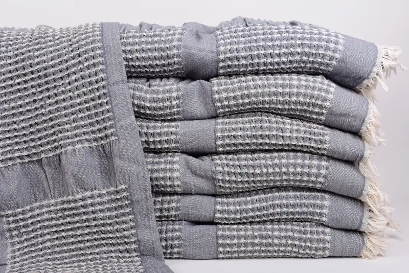 These Turkish bedcovers are woven from 100% organic cotton, ensuring high absorbency and soft texture. Measuring 83x79 inches (210x200 cm) and weighing approximately 1675 grams, they allow for slight weaving tolerances of 1-2.5 cm. Customization includes embroidery of names or dates using a dedicated machine and quality thread. Packages are shipped internationally within 3-5 days via DHL Express or FedEx. Note that personalized items do not qualify for returns or exchanges.