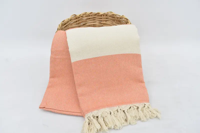 This organic cotton blanket, characterized by its vibrant orange hue, is meticulously handwoven from 100% recycled and organic cotton, ensuring a soft texture and high absorbency. Measuring 95 inches by 79 inches, corresponding to 240 cm by 200 cm, with a weight of 1140 grams, the blanket exhibits a slight variation of 1-2.5 cm in dimensions due to traditional weaving techniques. Customization is available, including monogram options, with embroidery enhancing its utility as a personalized gift, suitable for various occasions.