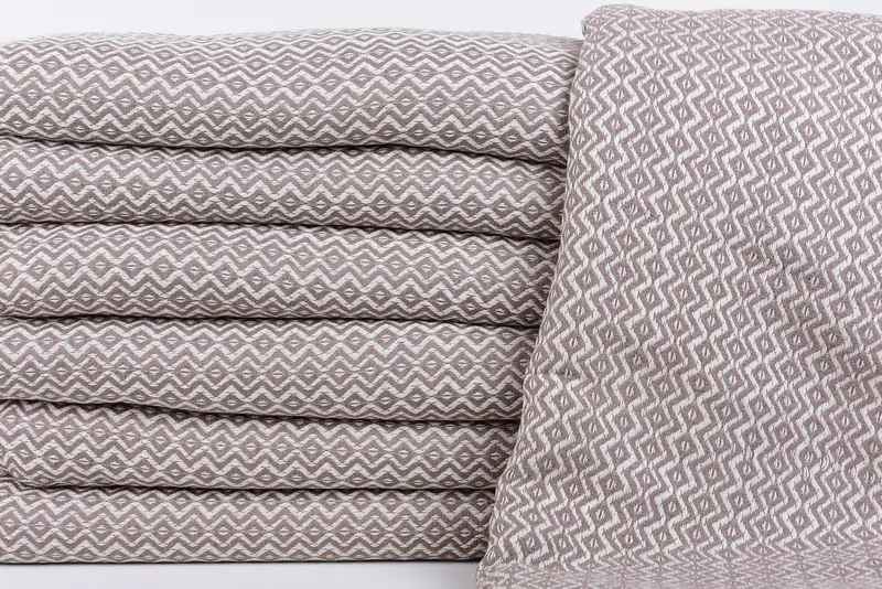 Turkish cotton bedspreads are characterized by their 100 percent organic cotton material, ensuring superior breathability and comfort. The organic cotton composition guarantees high absorbency, providing a luxurious feel. The dimensions are specified as 79x95 inches, translating to 200x240 cm, with a weaving tolerance that might cause slight variations of up to 1-2.5 cm.