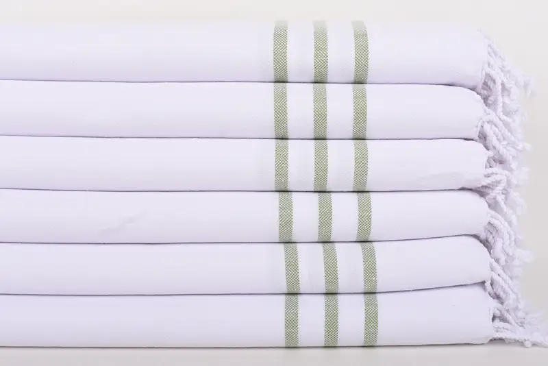 Each towel is crafted from 100 percent organic cotton, ensuring premium quality and softness. Dimensions are 40x24 inches or 100x60 centimeters, with a weight of 100 grams or 3.5 ounces, characterized by slight variations due to hand-weaving tolerances of 1-2.5 centimeters.
