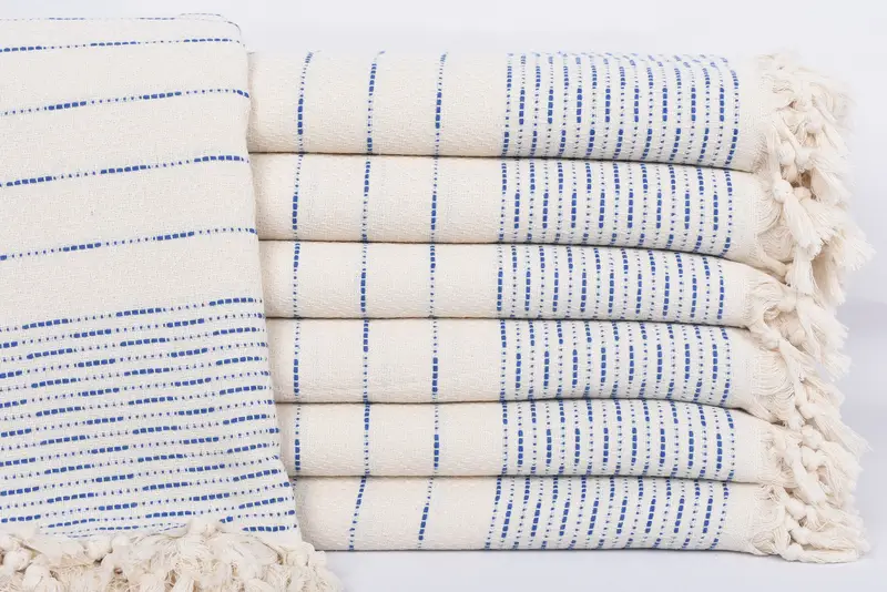 The Turkish blanket comprises 100 percent organic cotton, ensuring superior absorbency and comfort. Characterized by its dimensions of 97x91 inches or 245x230 centimeters, it weighs approximately 1220 grams or 43 ounces. Weaving tolerances might result in slight variations of up to 1-2.5 cm.