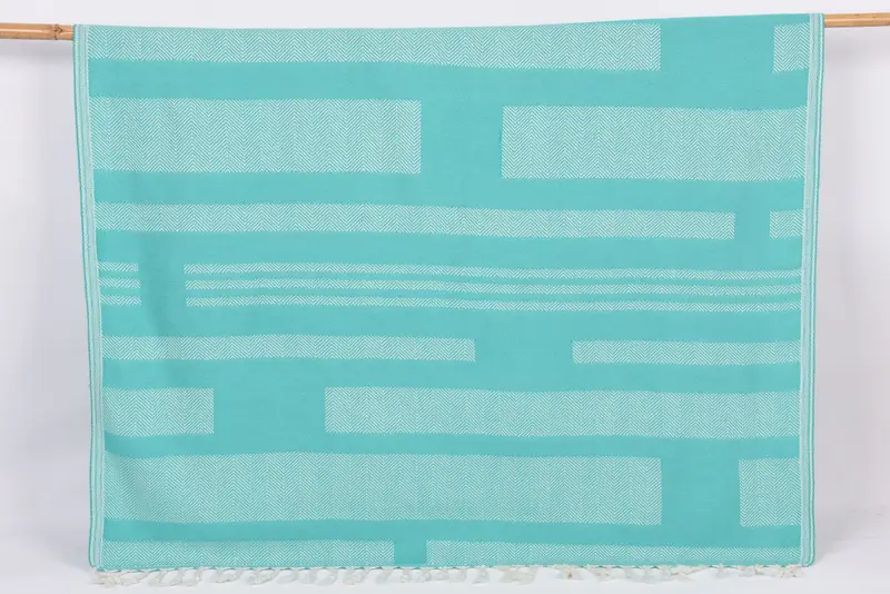 Organic cotton ensures a high level of absorbency, resulting in a soft and plush texture that is ideal for personal use. The towels, measuring 67x38 inches or 170x95 centimeters, weigh approximately 400 grams or 14.1 ounces. Hand-weaving tolerances may result in slight variations of up to 2.5 centimeters in dimensions.