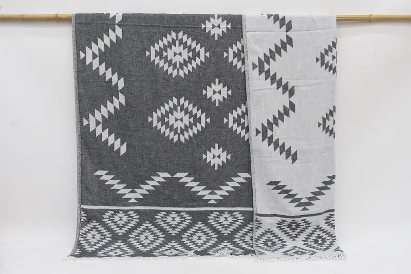 The blanket is characterized by its 100% natural cotton composition, ensuring high absorbency and breathability. Resulting in a lightweight and versatile textile suitable for multiple uses. The blanket features dimensions of 78 inches by 60 inches or 200 cm by 150 cm, with a tolerance of ±1-2.5 cm due to hand-weaving methods. Weighing between 500 and 600 grams, it balances between portability and comfort.
