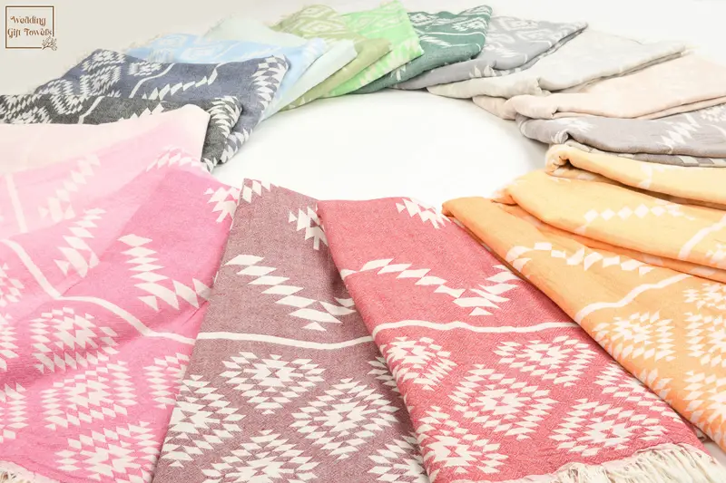 High-quality Turkish cotton characterizes these towels, resulting in unparalleled softness and absorbency. Dimensions include beach towels at 70x36 inches (90x180 cm) and hand towels at 17x39 inches (45x100 cm), ensuring adequate coverage for diverse needs. Each piece is hand-woven within a tolerance of 1-2.5 cm.